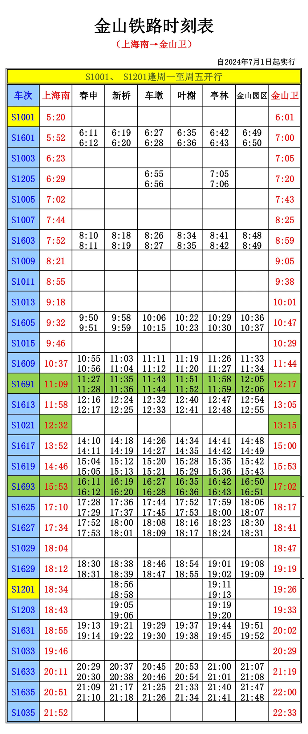 2024年金山鐵路的最新時刻表如下,詳細信息如下所示: