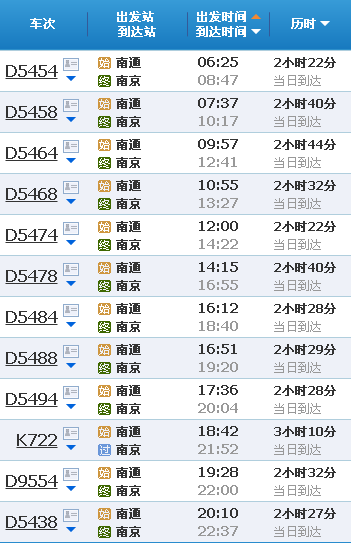 7、點擊查詢,獲取時刻表:網(wǎng)站將顯示最新的南通火車站時刻表。
